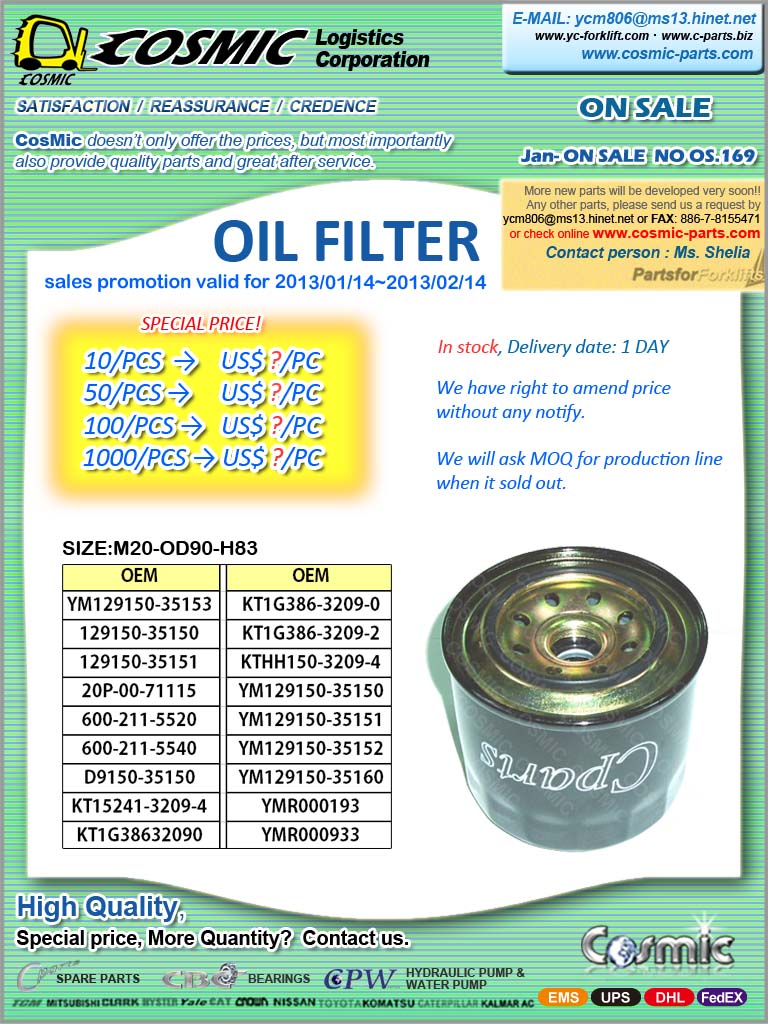 Cosmic Forklift Parts ON SALE NO.169-OIL FILTER