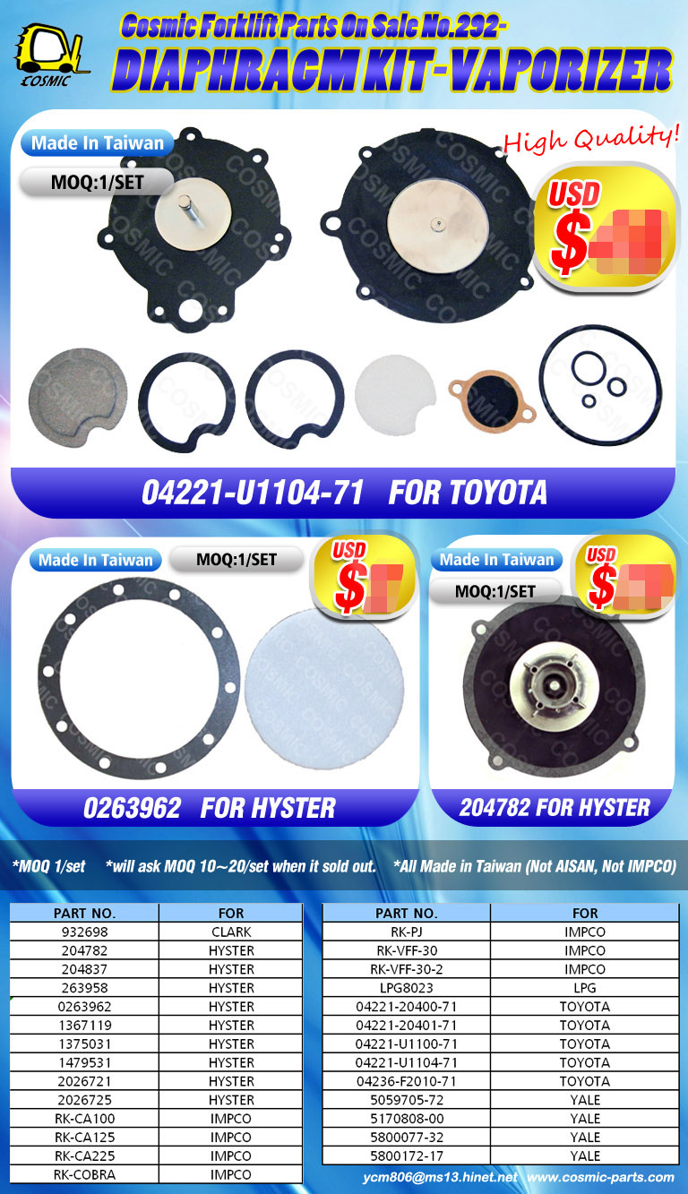 Cosmic Forklift Parts On Sale No.292-DIAPHRAGM KIT-VAPORIZER