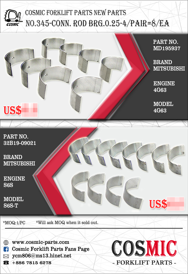 Cosmic Forklift Parts New Parts No.345-CONN. ROD BRG.0.25-4/Pair=8/EA
