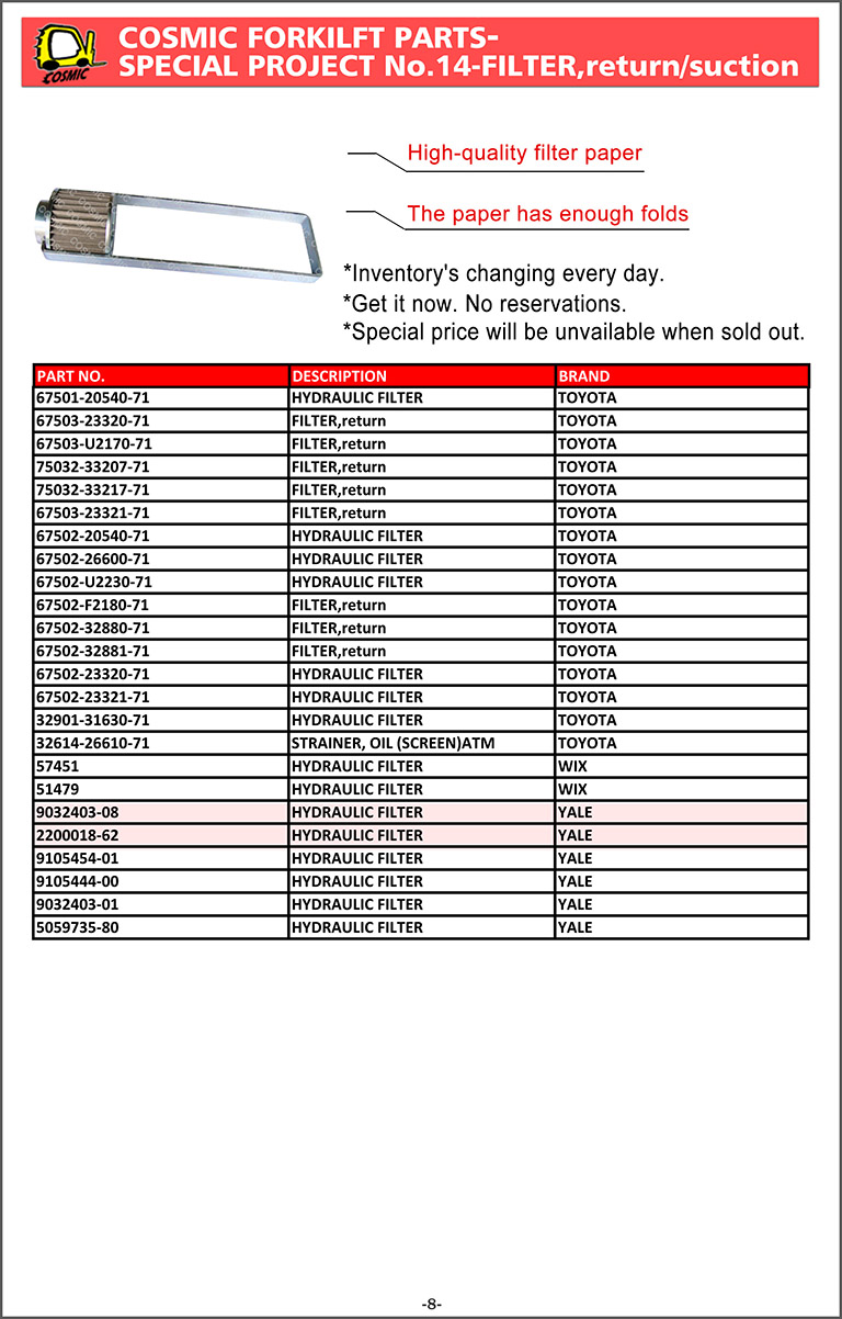 Cosmic Forklift Parts Special Project NO.14-FILTER,return/suction
